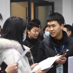 2月17日,求職者在人才集市上查看招聘崗位信息。