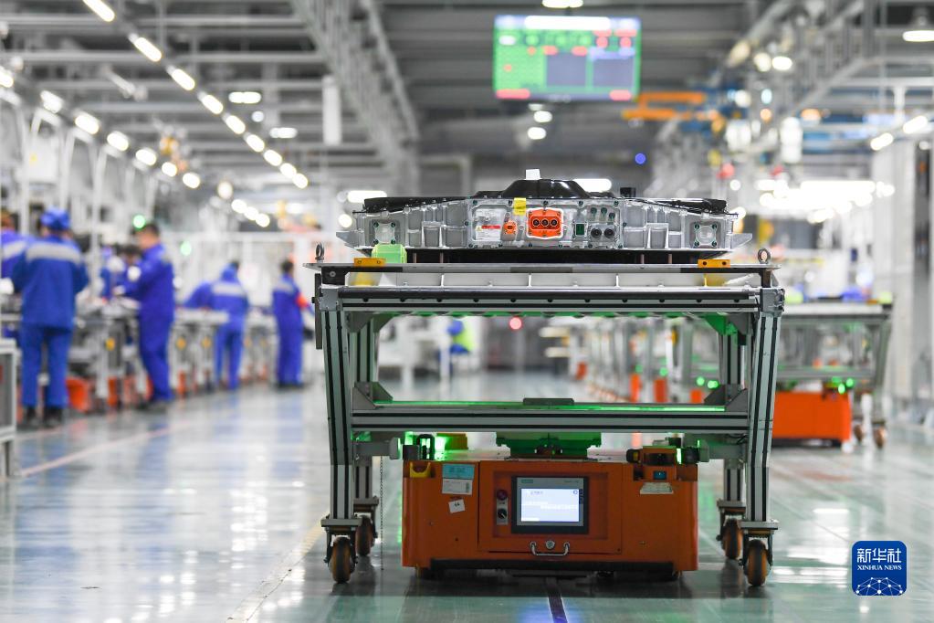 2月16日,在上汽時(shí)代動(dòng)力電池系統有限公司車(chē)間,一輛運輸車(chē)在運送安裝完成的動(dòng)力電池系統件。常州市擁有鋰電池電芯及配套生產(chǎn)企業(yè)120余家,動(dòng)力電池產(chǎn)業(yè)2022年實(shí)現產(chǎn)值超1700億元。
