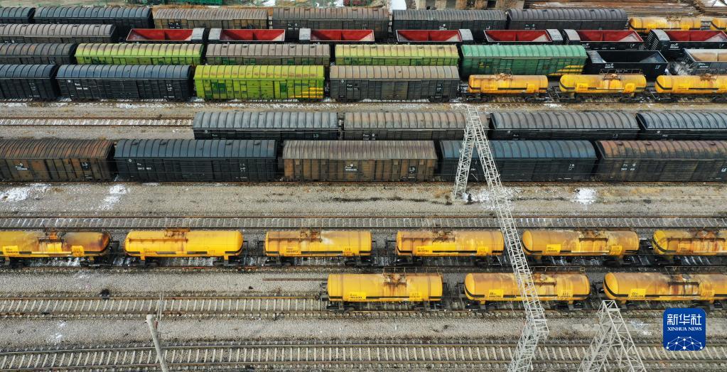 2月17日,貨車(chē)??吭谔m州貨運中心金昌鐵路貨場(chǎng)內等待裝車(chē)。