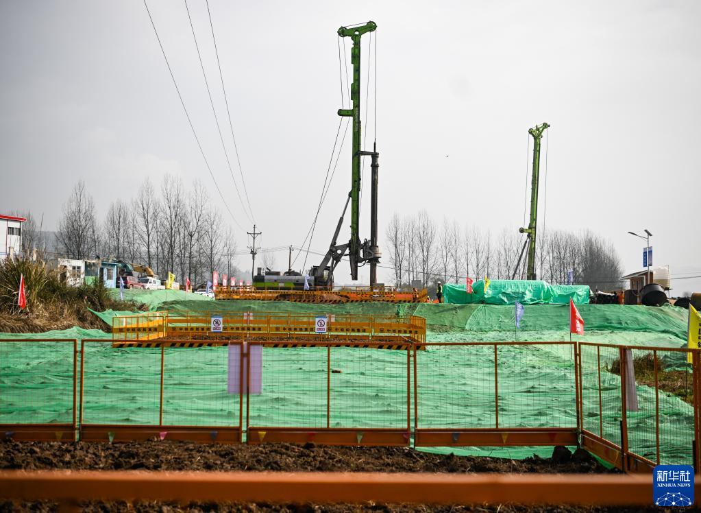 2月17日,在銅缽河特大橋施工現場(chǎng),工人操作打樁機施工。