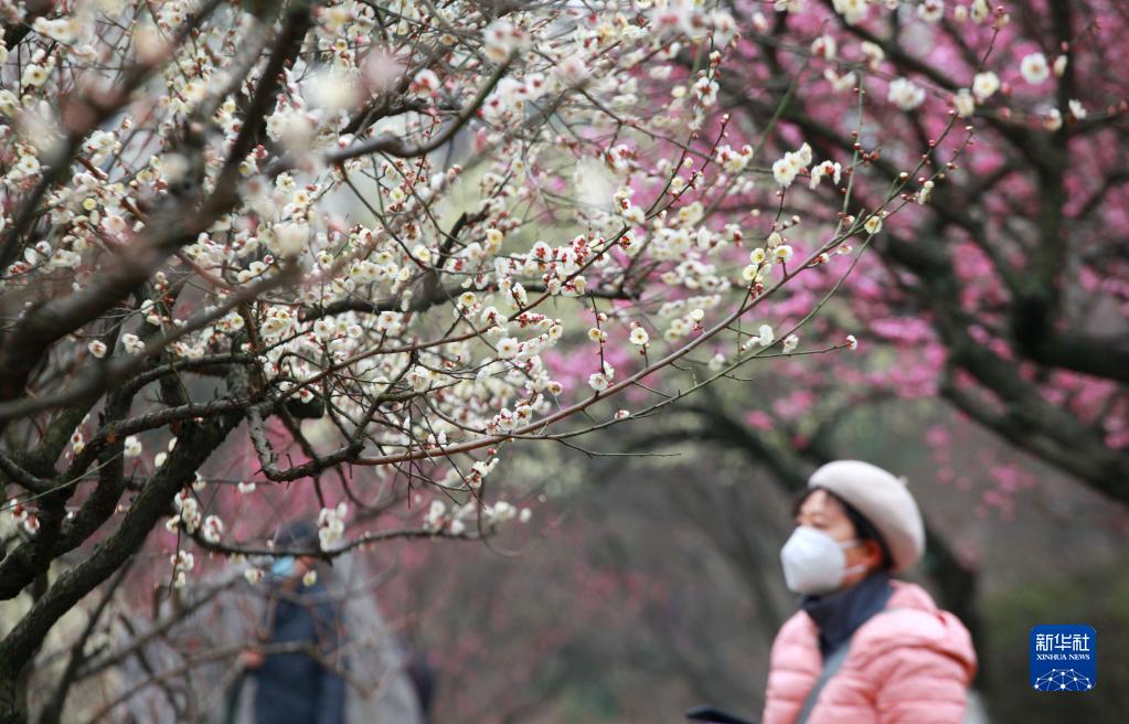 2月17日,人們在江蘇南京古林公園賞花游玩。