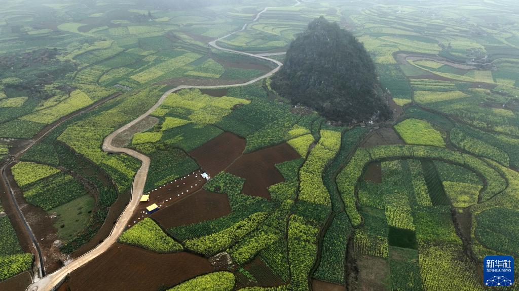 2月17日拍攝的貴州省六盤(pán)水市六枝特區木崗鎮萬(wàn)畝油菜基地(無(wú)人機照片)。