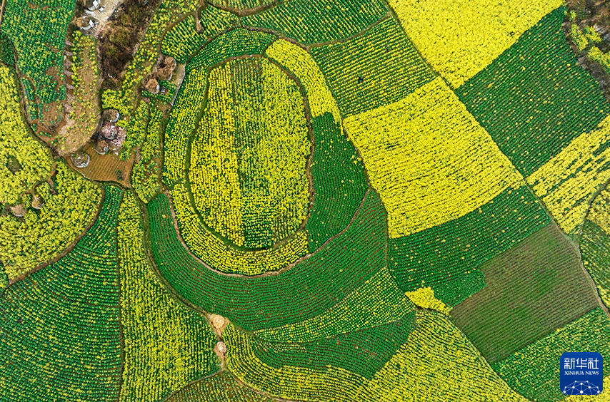 2月17日拍攝的貴州省六盤(pán)水市六枝特區木崗鎮萬(wàn)畝油菜基地(無(wú)人機照片)。