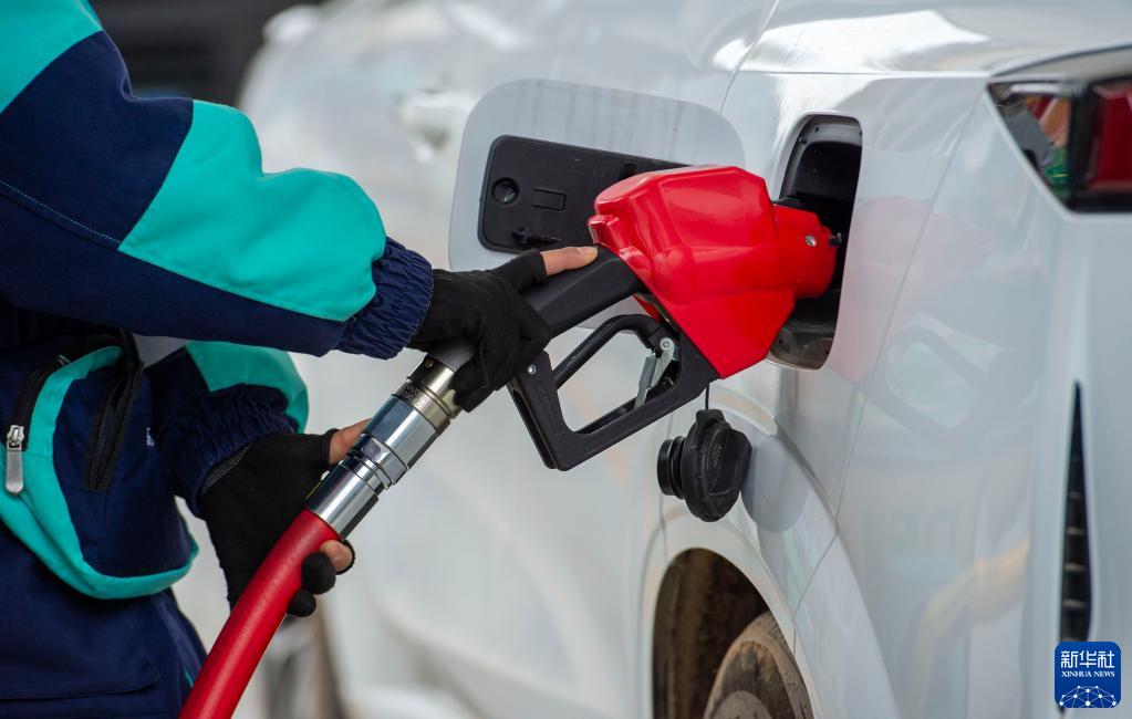 2月17日,貴州省從江縣一加油站工作人員給汽車(chē)加油。