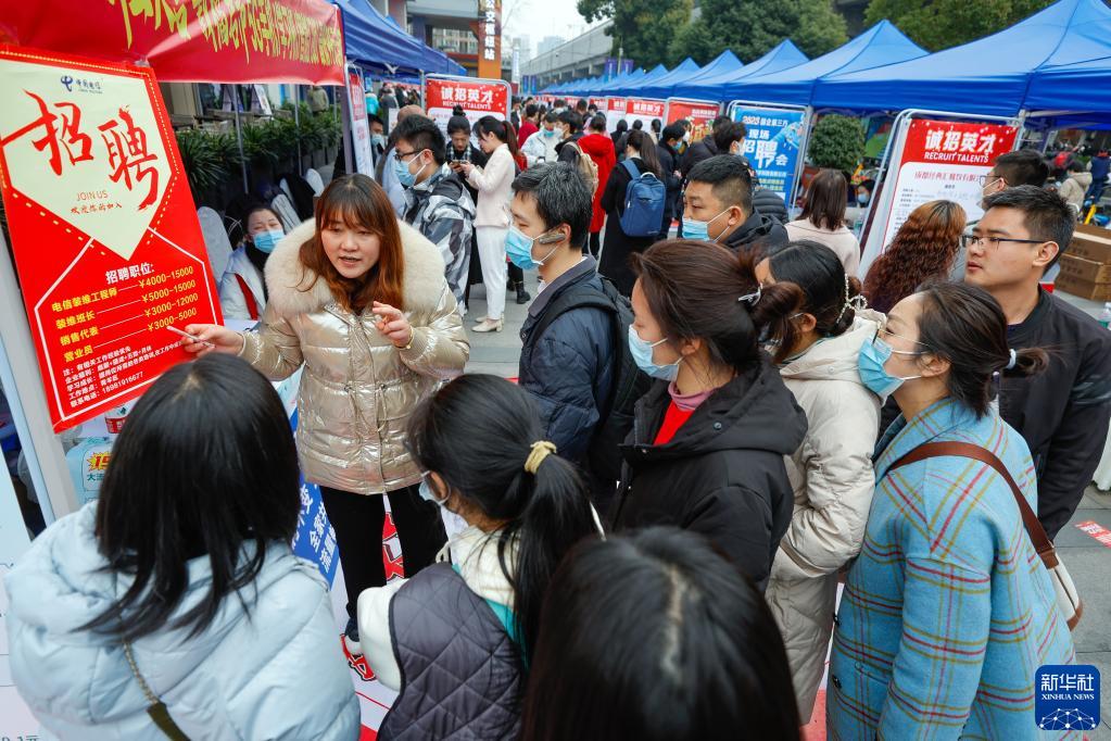 2月17日,在中國成都人力資源服務(wù)產(chǎn)業(yè)園,招聘企業(yè)工作人員向求職者介紹企業(yè)情況。