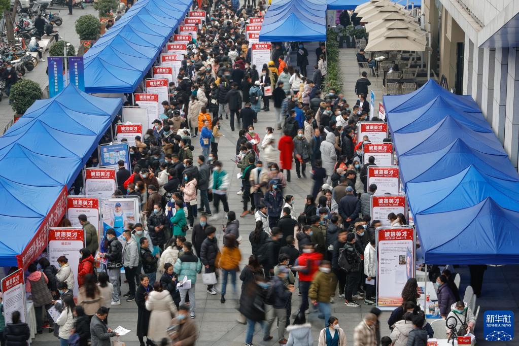 2月17日,人們在中國成都人力資源服務(wù)產(chǎn)業(yè)園查看招聘信息,尋找工作機會(huì )。