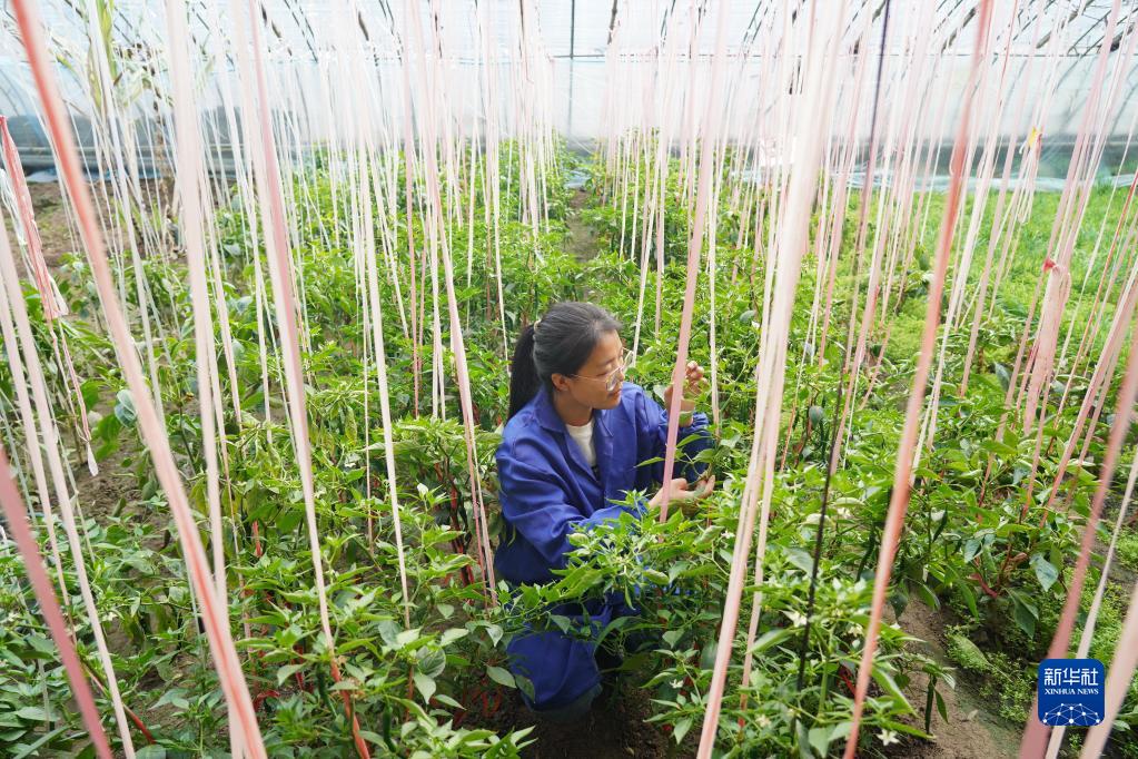 2月17日,張莎莎在試種棚內查看農作物長(cháng)勢。
