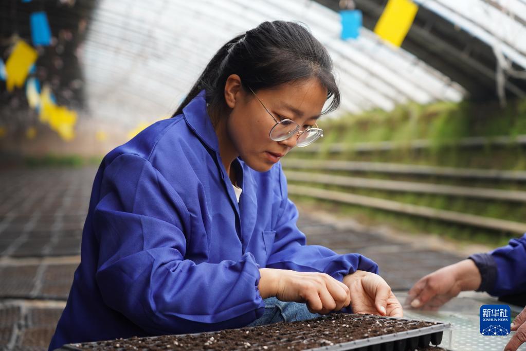 2月17日,張莎莎在育苗棚內進(jìn)行播種工作。