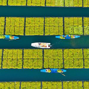 近年來(lái),浙江省杭州市淳安縣在千島湖典型庫灣、入湖口等區域,積極運用生態(tài)浮島水上植物無(wú)土栽培技術(shù)種植空心菜、水芹菜等水生蔬菜,直接吸收庫區水體中氮磷等元素,從而能夠有效地降低水體中營(yíng)養物質(zhì)的含量,提升水質(zhì)。近日,水生蔬菜進(jìn)入采收季節,“湖上菜園”呈現春收繁忙景象。