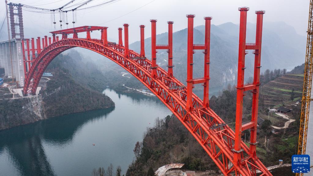 正在進(jìn)行橋面系施工的德余高速烏江特大橋(2月17日攝,無(wú)人機照片)。