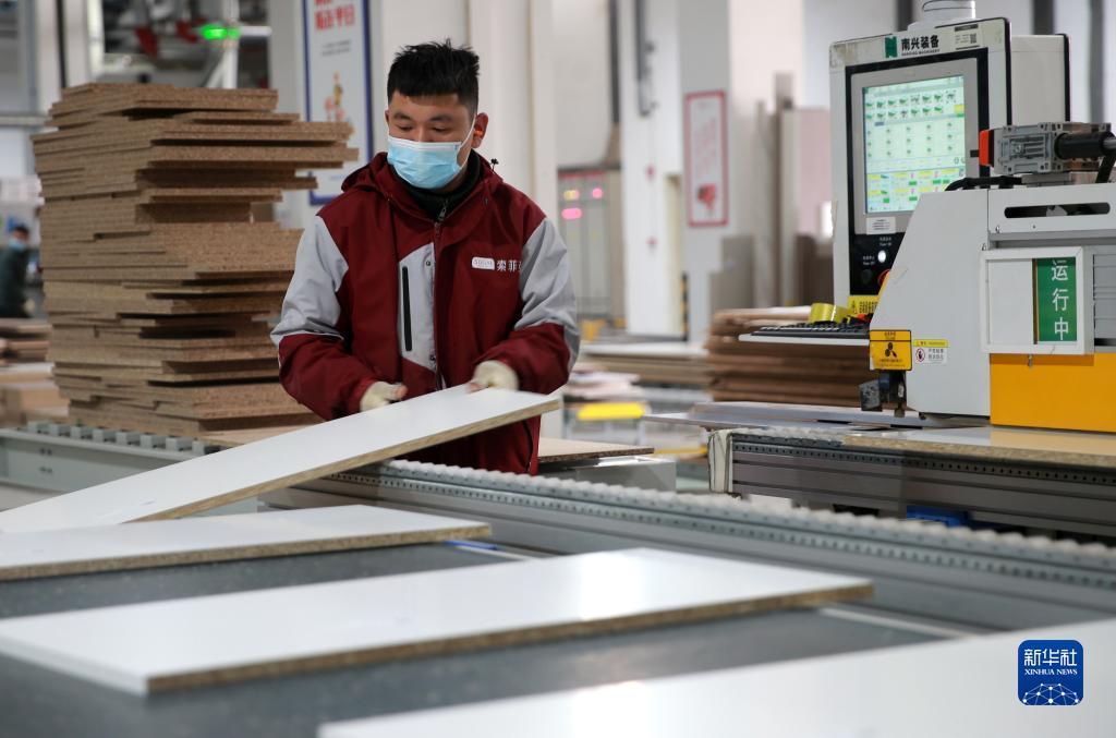 在蘭考縣一家家居企業(yè)的生產(chǎn)車(chē)間里,工作人員在處理家具板材(2月17日攝)。蘭考縣將現代家居產(chǎn)業(yè)作為主導產(chǎn)業(yè)之一,著(zhù)力建設具有重要影響力的品牌家居和定制家居集散地。