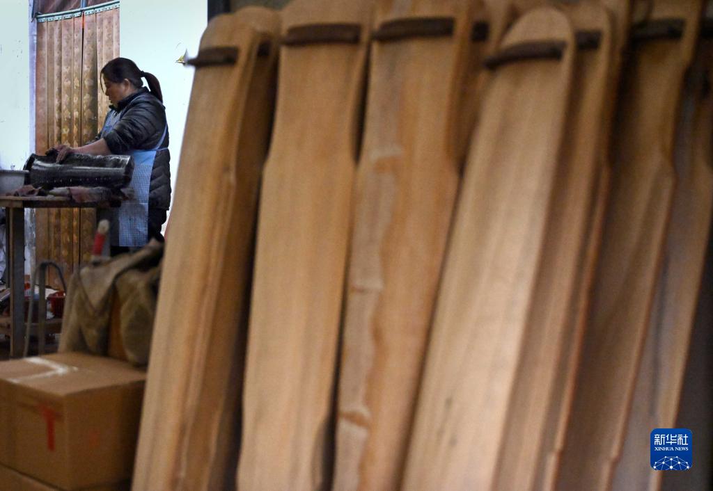 在蘭考縣堌陽(yáng)鎮徐場(chǎng)村的一處民族樂(lè )器家庭作坊里,村民在制作古琴(2月16日攝)。徐場(chǎng)村105戶(hù)村民里,90余戶(hù)都從事民族樂(lè )器加工制作,村內形成原材料加工、產(chǎn)品及配件制作、包裝為一體的產(chǎn)業(yè)鏈。