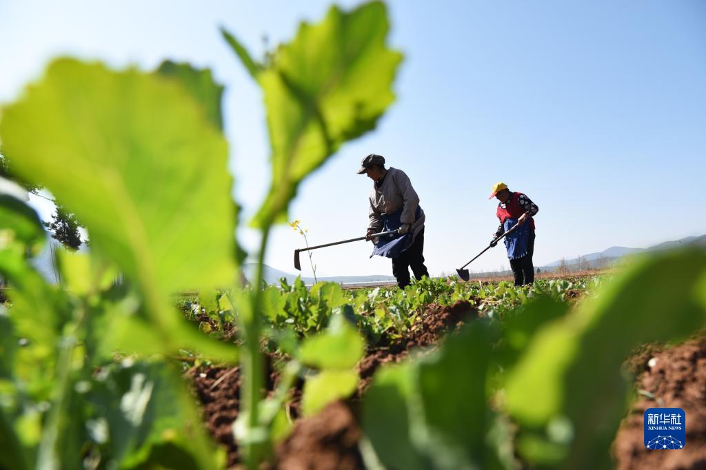 2月18日,在云南省麗江市古城區開(kāi)南街道的農田里,農民在勞作。