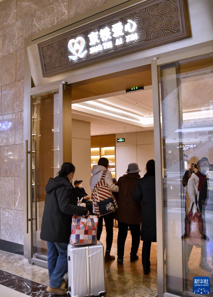 一位老年旅客在家屬陪同下來(lái)到北京火車(chē)站愛(ài)心候車(chē)室候車(chē)(2023年2月17日攝)。