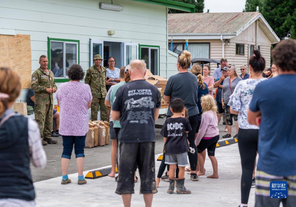 2月16日,新西蘭國防軍在新西蘭北島東部災區為民眾分發(fā)物資。