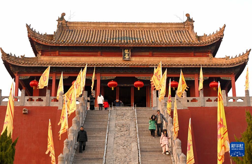 游客在開(kāi)封龍亭公園內游玩(2月15日攝)。