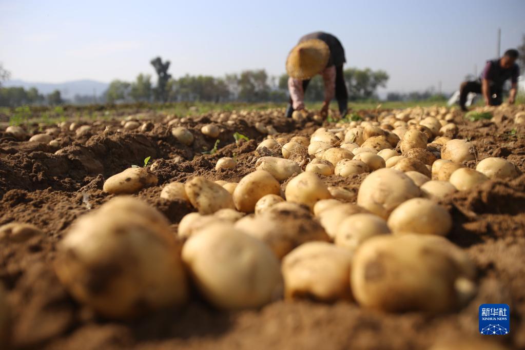 2月19日,在福建省廈門(mén)市翔安區內厝鎮許厝村,農民在蔬菜基地里采收馬鈴薯。
