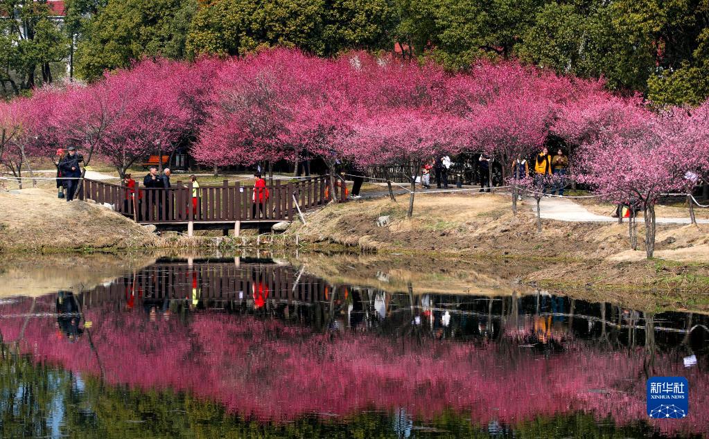 2月20日,游客在安徽黃山市歙縣練江牧場(chǎng)賞梅。
