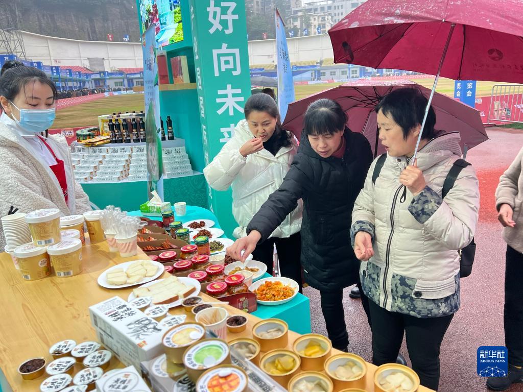 2月20日,在第五屆中國重慶·涪陵榨菜產(chǎn)業(yè)國際博覽會(huì )現場(chǎng),觀(guān)眾在選購涪陵榨菜產(chǎn)品。