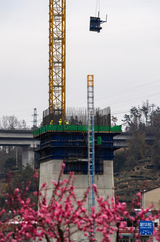 2月20日,工人在三峽庫區湖北省宜昌市秭歸縣三峽樞紐茅坪港疏港鐵路建設工地施工。
