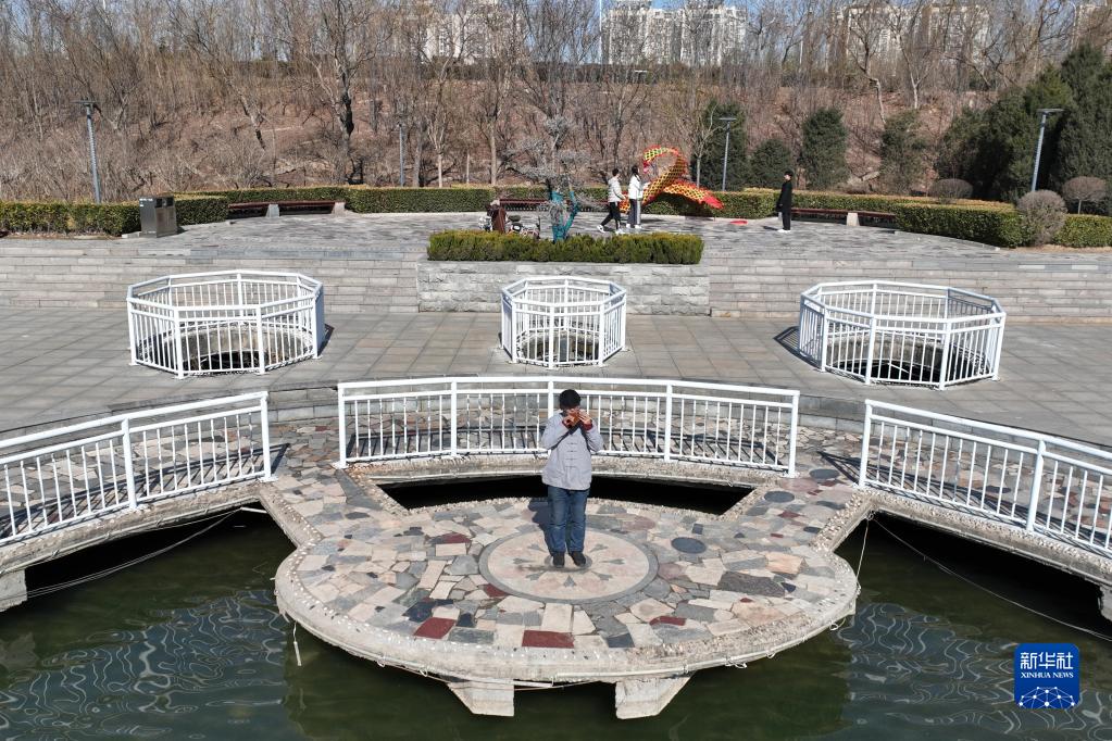 2月20日,陶笛藝人侯義敏在河北省邢臺市一公園內吹奏木質(zhì)陶笛(無(wú)人機照片)。
