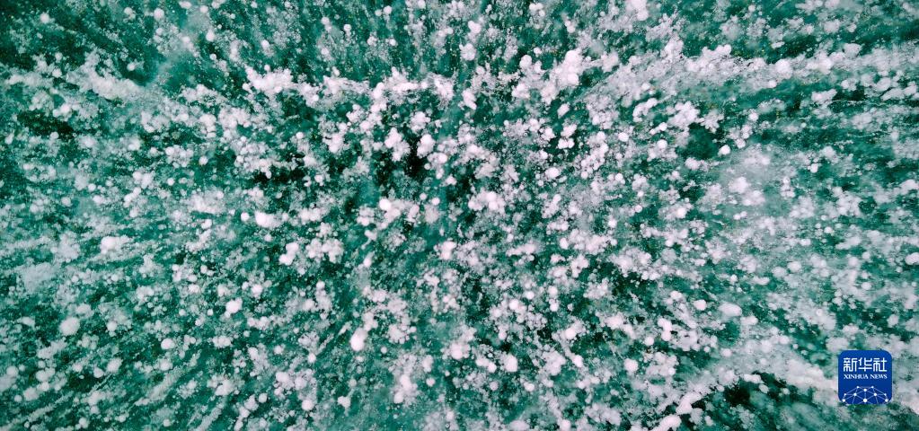 這是瓊穆崗嘎冰川冰湖湖面的“氣泡冰”(手機照片,2月20日攝)。
