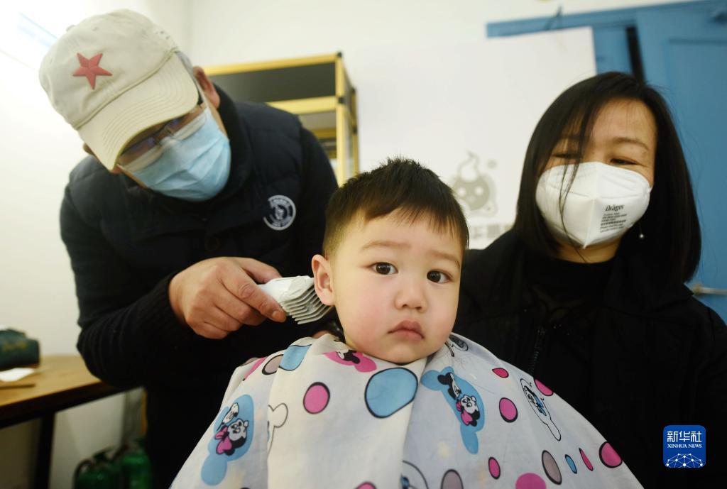 當日是農歷二月初二,許多家長(cháng)帶著(zhù)孩子“剃龍頭”,祈求孩子在新的一年健康成長(cháng)。