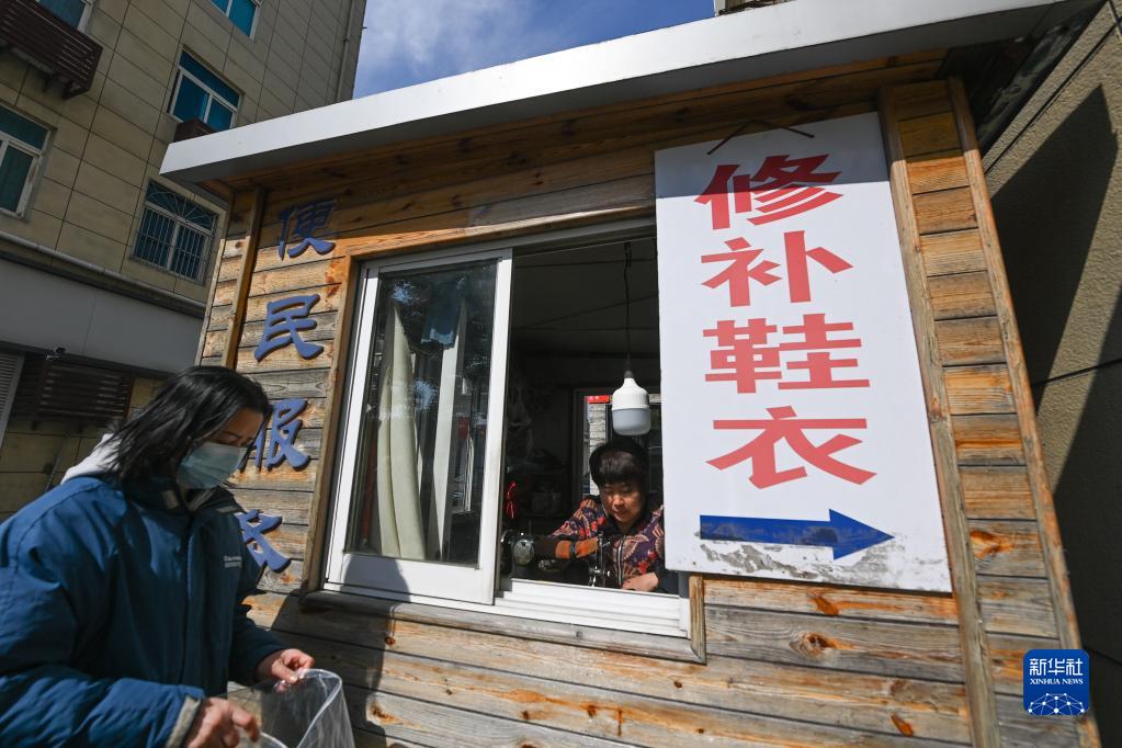 2月21日,邱芝英(右)在浙江省杭州市富陽(yáng)區銀湖街道高橋社區的便民服務(wù)亭內給居民縫補褲子。該便民服務(wù)亭由社區提供,免租金和水電費,同時(shí)還組織黨員志愿者定期進(jìn)行周邊環(huán)境保潔。銀湖街道在打造現代社區的過(guò)程中,設置多個(gè)“小修小補”便民服務(wù)亭,積極打造便民生活圈、滿(mǎn)足居民日常生活需求。