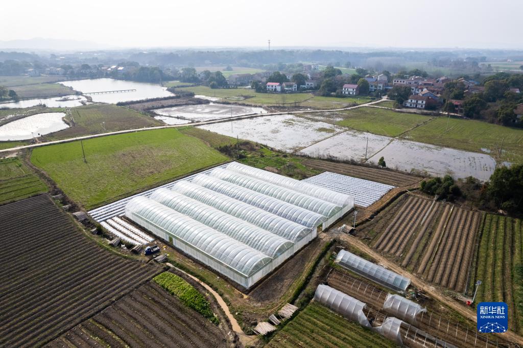 這是2月21日在醴陵市沈潭鎮龐龍村拍攝的一處新修建的育秧大棚(無(wú)人機照片)。