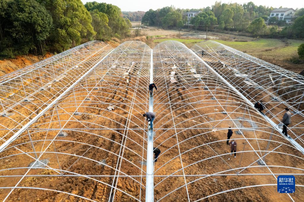 新華全媒+丨湖南醴陵:搶建育秧大棚備春耕