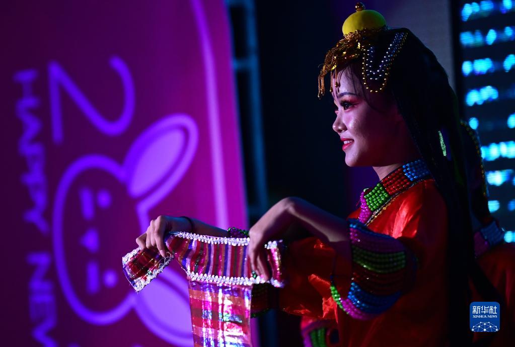 2月21日,學(xué)生在西安市浐灞第一中學(xué)舉行的藏歷新年團拜活動(dòng)上表演藏族舞蹈。