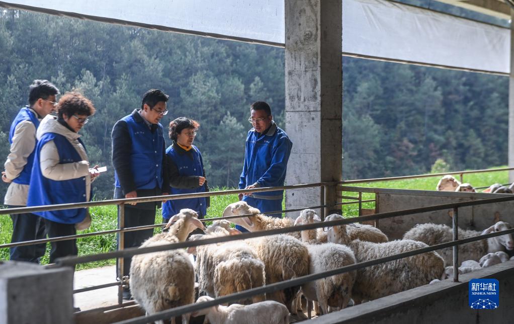 2月22日,在杭州市臨安區昌化鎮后營(yíng)村湖羊養殖基地,臨安區科學(xué)技術(shù)協(xié)會(huì )“三服務(wù)”小分隊的農技專(zhuān)家姜俊芳(浙江省農科院副研究員,右二)在指導養殖戶(hù)科學(xué)養殖。