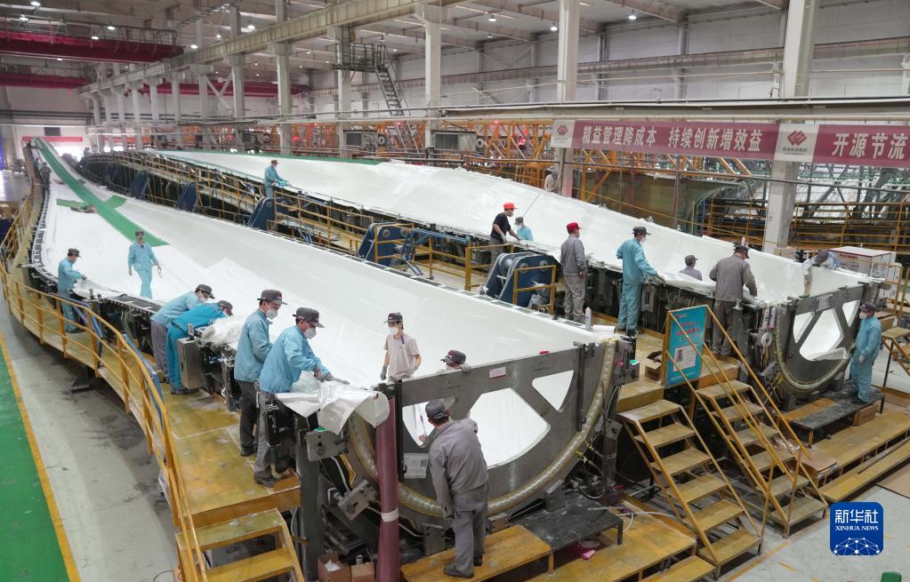 2月22日,保定國家高新技術(shù)產(chǎn)業(yè)開(kāi)發(fā)區一家風(fēng)電設備制造企業(yè)工人在生產(chǎn)車(chē)間工作。