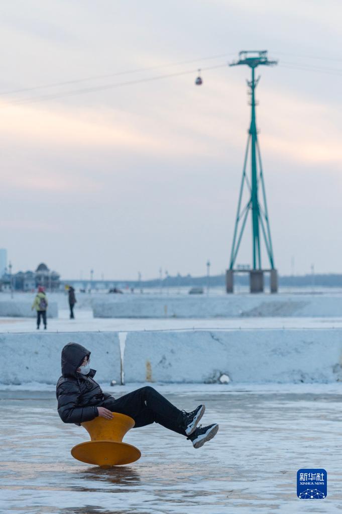 2月22日,游客在哈爾濱松花江冰雪嘉年華園區內游玩。