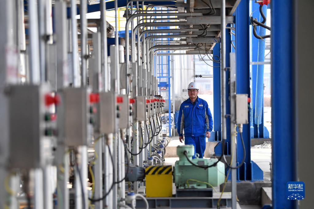 蘭州石化公司橡膠運行部丁腈二區域工藝技術(shù)負責人崔國鋒在進(jìn)行生產(chǎn)裝置日常巡檢(2月22日攝)。