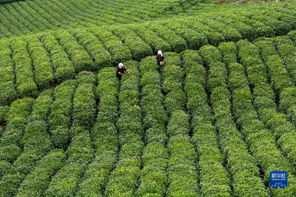 2月23日,貴州省普安縣茶源街道聯(lián)盟村的茶農在采摘春茶。