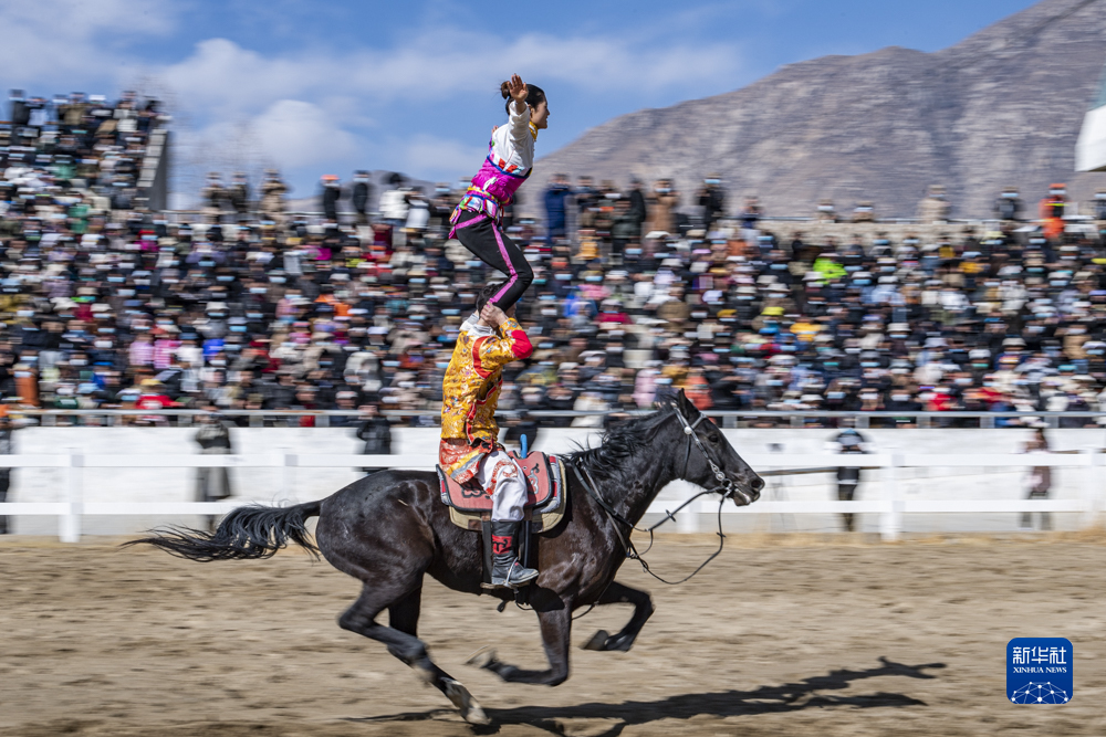每年藏歷新年初三,在拉薩賽馬場(chǎng)舉辦馬術(shù)表演已成為當地慶祝新年的傳統,深受廣大群眾喜愛(ài)。騎手們英姿颯爽,為觀(guān)眾們帶來(lái)騎馬拾哈達、騎馬射箭等精彩表演。