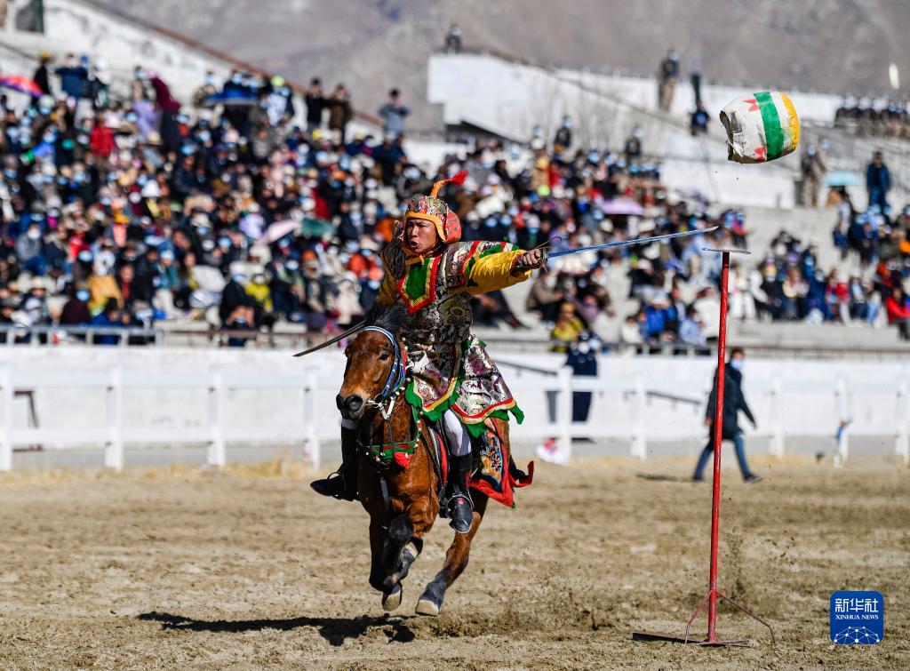 每年藏歷新年初三,在拉薩賽馬場(chǎng)舉辦馬術(shù)表演已成為當地慶祝新年的傳統,深受廣大群眾喜愛(ài)。騎手們英姿颯爽,為觀(guān)眾們帶來(lái)騎馬拾哈達、騎馬射箭等精彩表演。