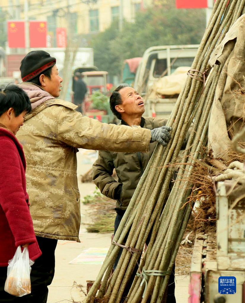 2月23日,在河南省洛陽(yáng)市汝陽(yáng)縣小店鎮集市上,農民精心選購樹(shù)苗。