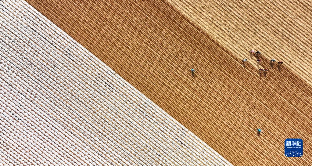 2月23日,山東省臨沂市郯城縣郯城街道農民在田間勞作(無(wú)人機照片)。
