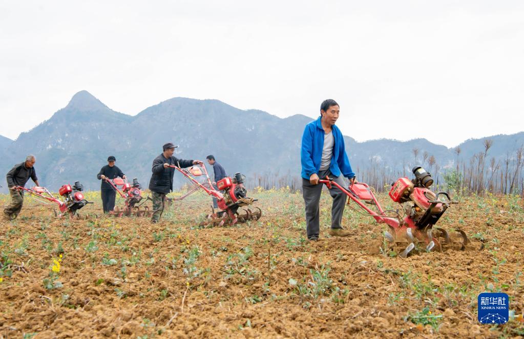 2月24日,貴州省黔南布依族苗族自治州羅甸縣沫陽(yáng)鎮紅星村村民駕駛小型農機在耕地。