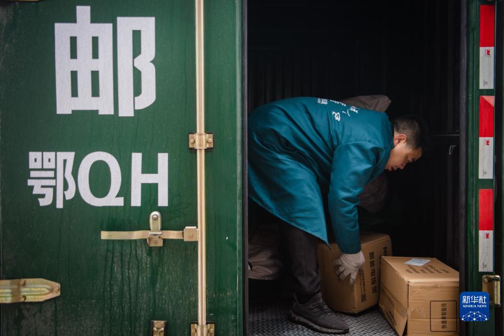 2月22日,中國郵政宣恩分公司投遞員在搬運郵件。