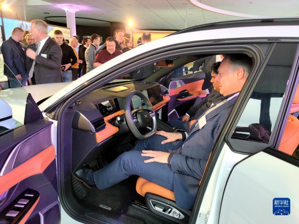 2月23日,人們在小鵬汽車(chē)荷蘭鹿特丹門(mén)店試乘新上市的城市越野車(chē)G9。