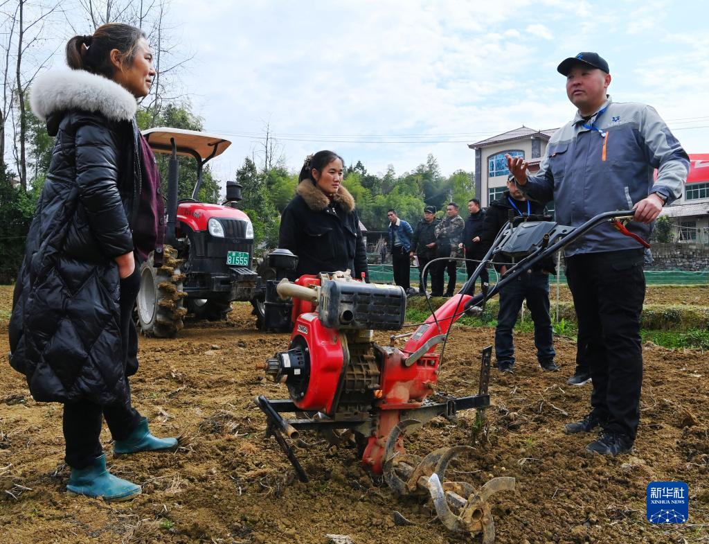 2月24日,重慶市農委農機專(zhuān)業(yè)技術(shù)人員給酉陽(yáng)縣麻旺鎮吉安村農機手指導微耕機的使用技巧和維修技術(shù)。
