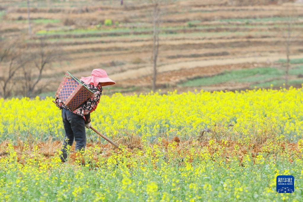 2月24日,在云南省曲靖市沾益區龍華街道紅瓦房村,農民在地里勞作。