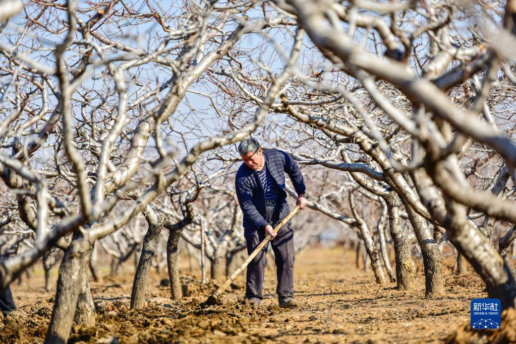 2月25日,農民在山東省青州市云門(mén)山街道付家村一處桃園里勞作。