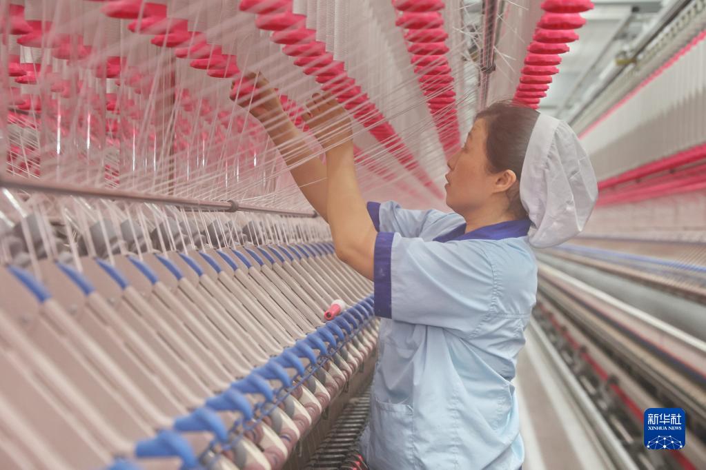 2月24日,在江蘇省南通市崇川區江蘇大生集團智慧紡紗工廠(chǎng)生產(chǎn)車(chē)間,紡織工人在生產(chǎn)車(chē)間忙碌。