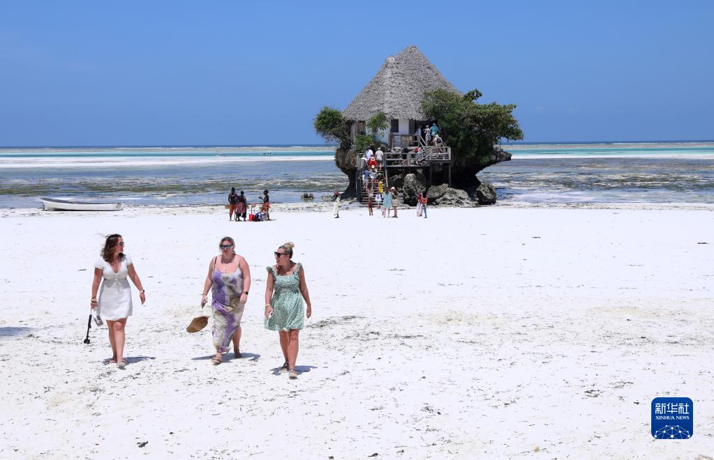 2月24日,游客在坦桑尼亞桑給巴爾島的巖石餐廳附近游覽。