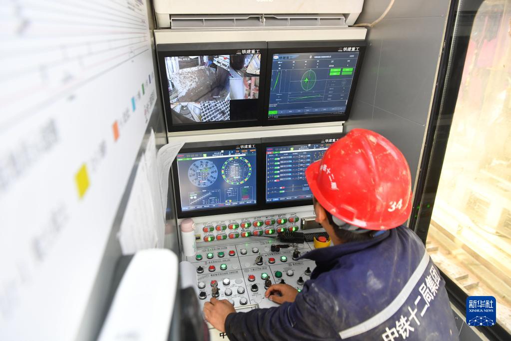 2月24日,中鐵十二局工人在位于西安市長(cháng)安區的陜西引漢濟渭工程少陵塬隧洞施工現場(chǎng)操縱盾構機。