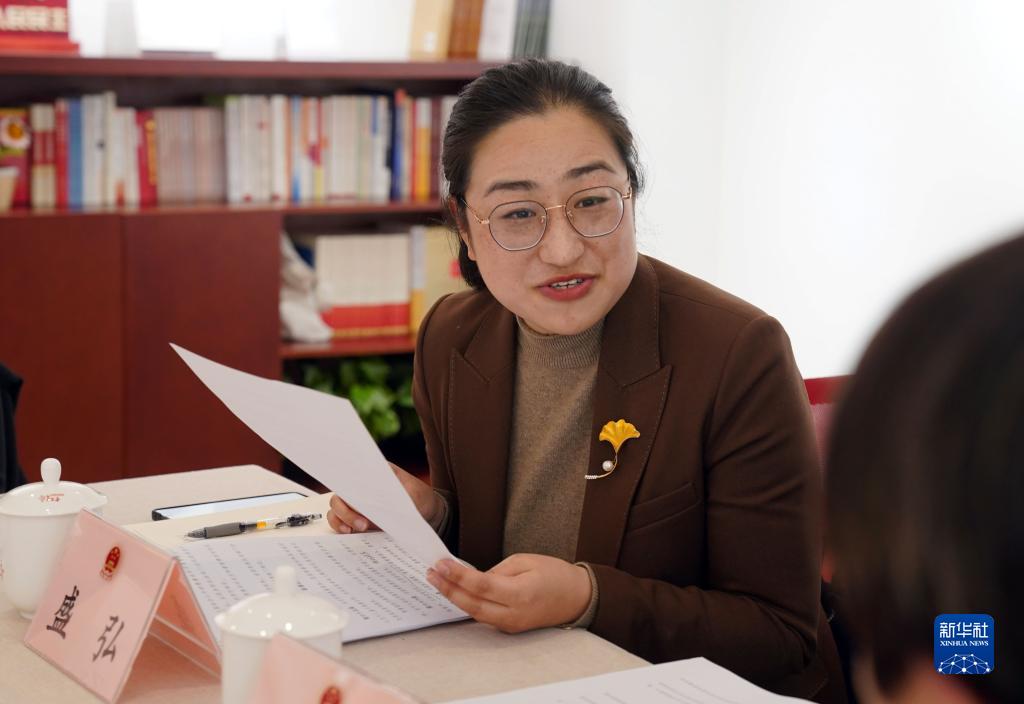 2月7日,在上海虹橋街道古北市民中心召開(kāi)的立法意見(jiàn)征詢(xún)會(huì )上,盛弘和參會(huì )代表交流。新華社記者 劉穎 攝